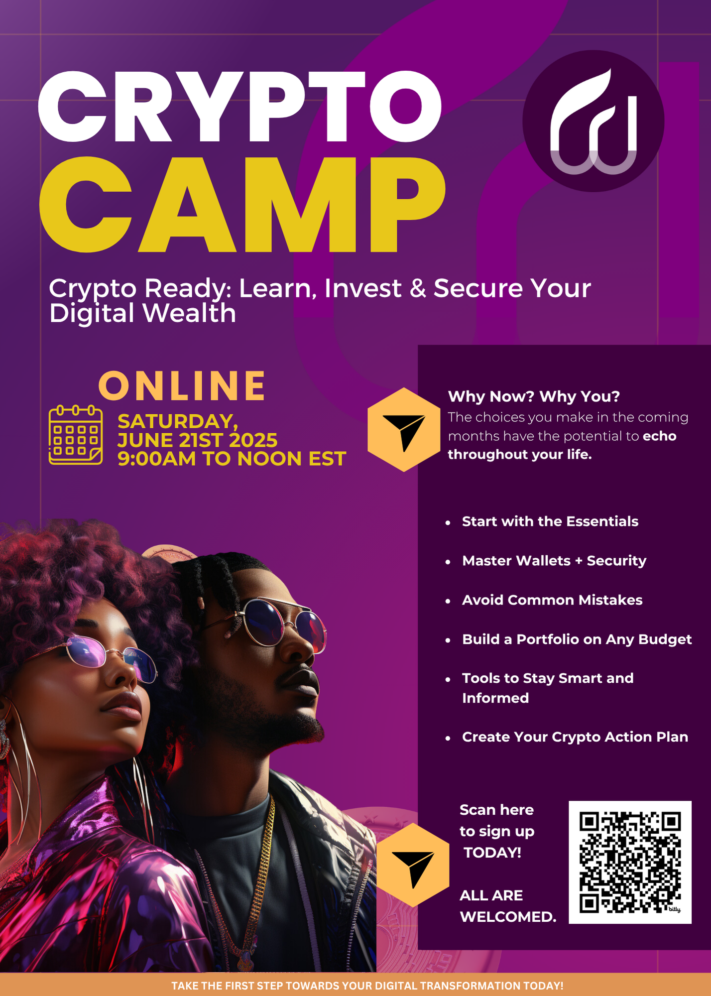 Hands on session to securely set up and manage your cryptocurrency accounts. You will leave with the competence to navigate your investment journey like a seasoned pro. Experience is invaluable!